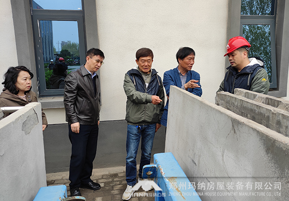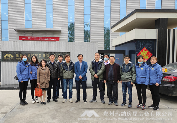 瑪納公司建有完善的“工業化房屋制造系統”裝備研發及產業化基地。在瑪納公司鮑總、許總及技術人員陪同下,崔琪院長、潘華主任、李清海主任參觀了瑪納公司上街區工業化生產基地,并對瑪納公司目前所做出的成績給予了高度的評價。鮑總、許總詳細介紹了瑪納公司加工設備及生產技術,各位領導認真聽取后對我公司現有的生產線和技術研發工作表示贊許和高度評價。