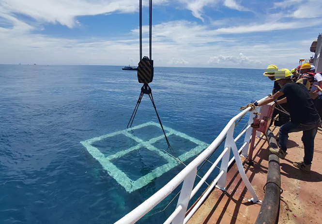 據了解,魚礁將用于洛磧、中堆灘段的生境營造區施工點,具有流場效應、生物效益、遮蔽效應三大生態功能。該區域建成后,良好的水流流態可提供緩變的流速條件供生物選擇棲息;礁體裸露的表面可吸附生物、沉積物為魚類提供餌料;礁體本身可作為隱蔽庇護場所,供幼魚躲藏避害,從而提高幼魚的存活率。