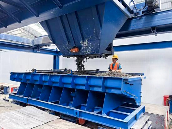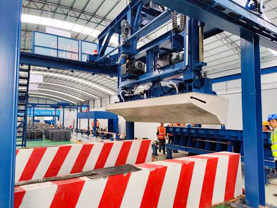 該生產(chǎn)線包含六大功能區(qū):包含鋼筋籠制作區(qū)、混凝土澆筑區(qū)、蒸汽養(yǎng)生區(qū)、拆模清理區(qū)等,各區(qū)域由軌道串聯(lián)成一個(gè)環(huán)形整體,區(qū)域間配備了機(jī)械臂、擺渡車和移動(dòng)小車,實(shí)現(xiàn)工序無(wú)縫銜接。