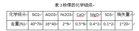 粉煤灰的化學成分,隨原煤種而異,一般的化學成分組成見表3。