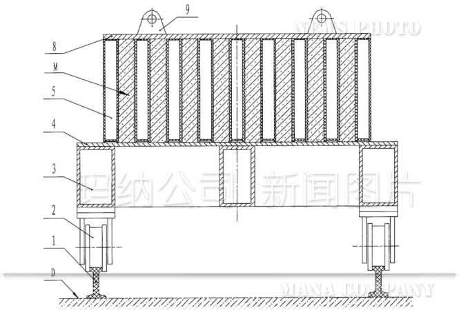 成組立模是建筑用條形墻板的專用生產設備。它是以成型模腔M為主體,成型模腔M是由底架3、底板4、隔板5、開啟堵板6、上壓板8等模塊圍成的六面體成型空腔(詳見圖1~圖3)。條形墻板就是通過向成組立模的成型模腔M中澆注所需板材的料漿并經過凝固、養護后得到的外形與成型模腔完全一致的六面體。條形墻板的六個面分別是兩個側面、四個邊模面。其中墻板的側面是由垂直于水平底邊模并等間距布置的隔板來實現其成型的,即條形墻板的側面在成組立模中成型時一定處于與地面垂直的狀態。但四條邊模面在傳統成組立模中的安裝位置分為兩種:側立式和豎立式。所謂側立式是指兩個長邊邊模面呈上、下水平對稱布置,兩個短邊邊模面呈左、右豎直對稱布置;而豎立式正好與此相反,是兩個短邊邊模面呈上、下水平對稱布置,兩個長邊邊模面呈左、右豎直對稱布置。但無論是哪種成型拼裝方式,總有兩個邊模面是呈上、下水平對稱布置的。當通過注料孔(ZLK)向封閉的模腔中進行壓力注料時,隨著注入料漿的增多模腔里的空氣逐步被擠壓上移,最后聚集到上壓板8附近。如果氣體不及時排出,對上壓板附近料漿的流動及上成型面的成型質量都有嚴重的不良影響。為了使模腔內的氣體能夠排出,在上壓板8上需設置排氣孔(PQK)。為了使用排氣順暢,排氣孔的數量越多越好。但是在排氣孔附近的成型質量肯定不理想,排氣孔數量越多則相應的上成型面(即上邊模面)的成型質量越差。而且,即使排氣孔數量再多,其中間也有一定的間隔距離,再加上排氣孔容易阻塞(因為排氣孔不可能太大),以至于上成型面不可避免地經常發生“氣堵”或者出現大氣泡,嚴重影響上成型面(即上邊模面)的成型質量。