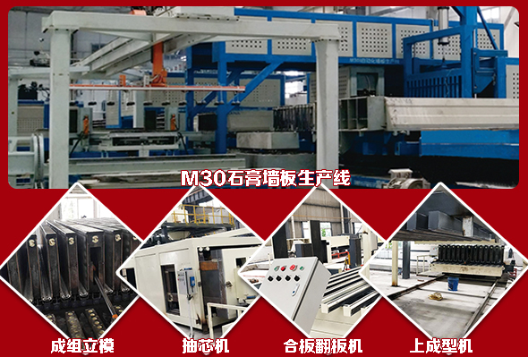 M30石膏墻板生產(chǎn)線:成組立模,抽芯機,合板翻板機,上成型機