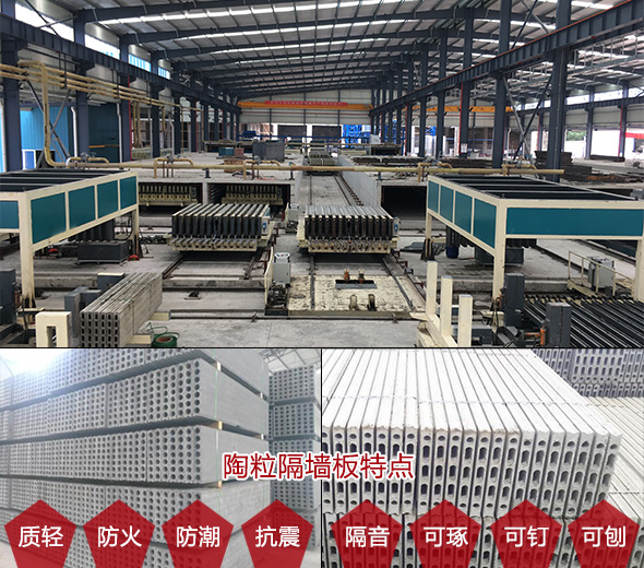陶粒墻板生產(chǎn)線現(xiàn)場/陶粒隔墻板特點(diǎn)