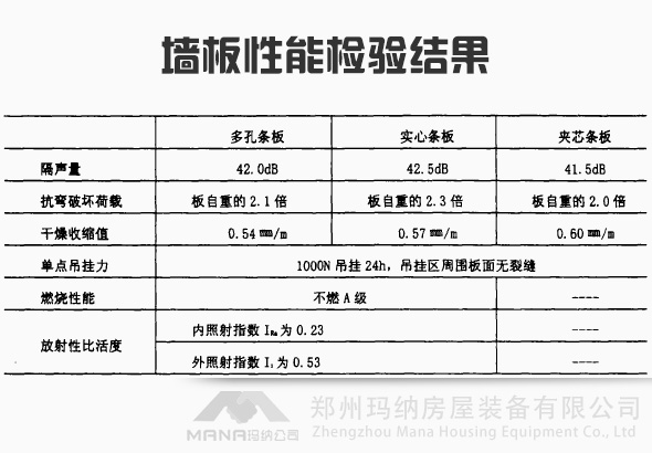 委托國內相關單位對產品或產品組成材料進行了隔聲性、不燃性、放射性、抗彎破壞荷載、單點吊掛力與干燥收縮值檢測,全部滿足合同指標要求。